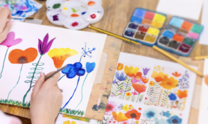 Pintura acuarela sobre hojas cason o